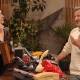 Der zweite Stuhl, den ich präsentierte, hatte etwas Organisches und ist der teuerste Stuhl aus dem Sortiment, designt von Tom Dixon. Kurzer Exkurs zu diesem wichtigen und spannenden Designer, der 1959 in Tunesien geboren wurde, aber mit seiner Familie im Alter von vier Jahren nach Großbritannien zog. Als unkonventioneller Denker in der Designwelt begann er seine Karriere auf ungewöhnliche Weise: Nach dem Abbruch seines Kunststudiums organisierte er Partys und spielte als Bassist in der Band „Funkapolitan“. Mit 25 Jahren entdeckte Dixon das Schweißen und fertigte Möbel und Skulpturen aus gefundenen Materialien an. Zunächst schuf er seine Werke für Clubs, später wurden sie auch in Galerien ausgestellt. Dieses Modell erzielt bei Auktionshäusern bis zu 3500 Euro. Norbert genoss das angenehme Schwingen des Sessels.